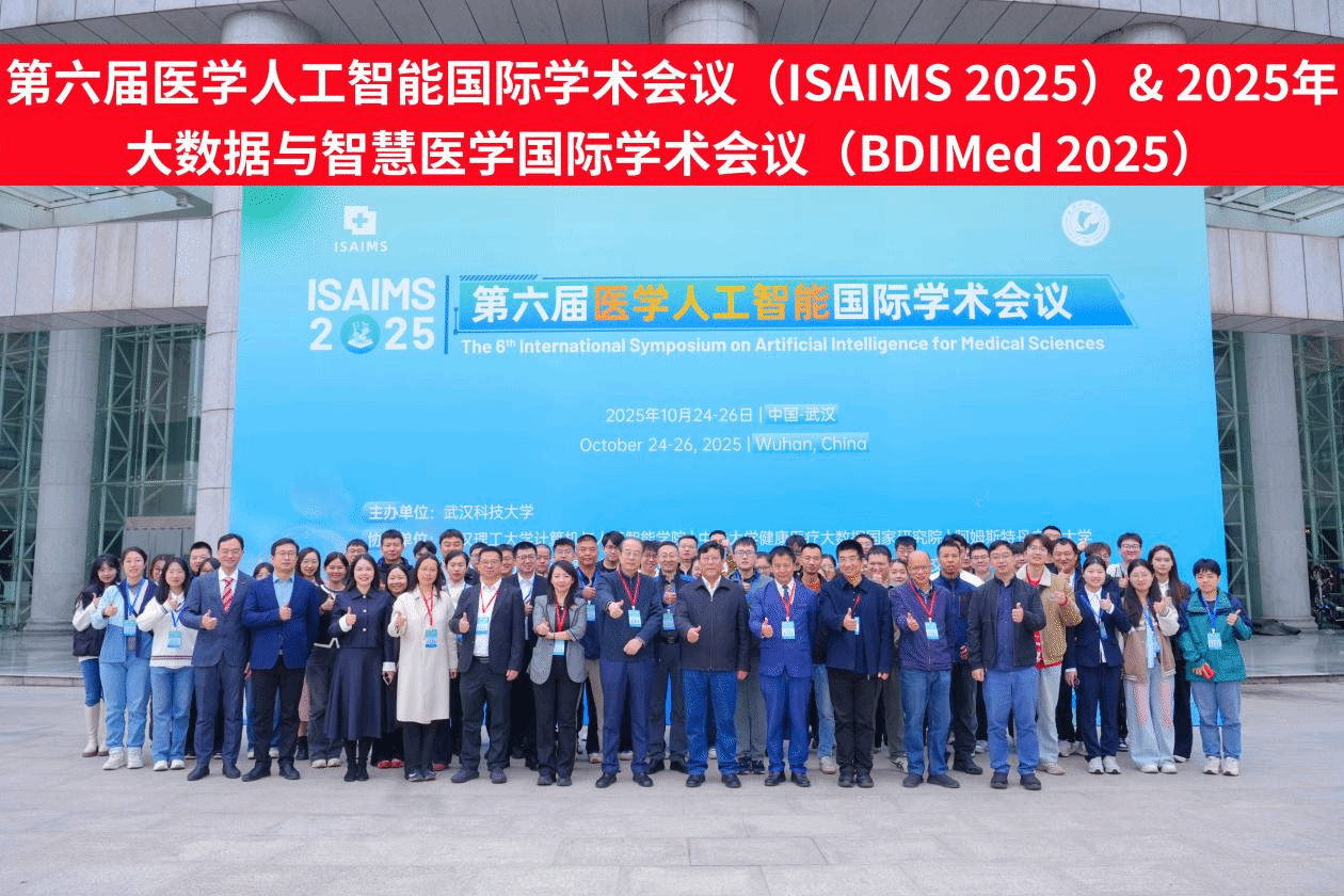 武科大网讯 10月25日,第六届医学人工智能国际学术会议(ISAIMS 2025)与2025年大数据与智慧医学国际学术会议(BDIMed 2025)在我校黄家湖校区举办。来自海内外的百余位专家学者齐聚一堂,共襄学术盛举。