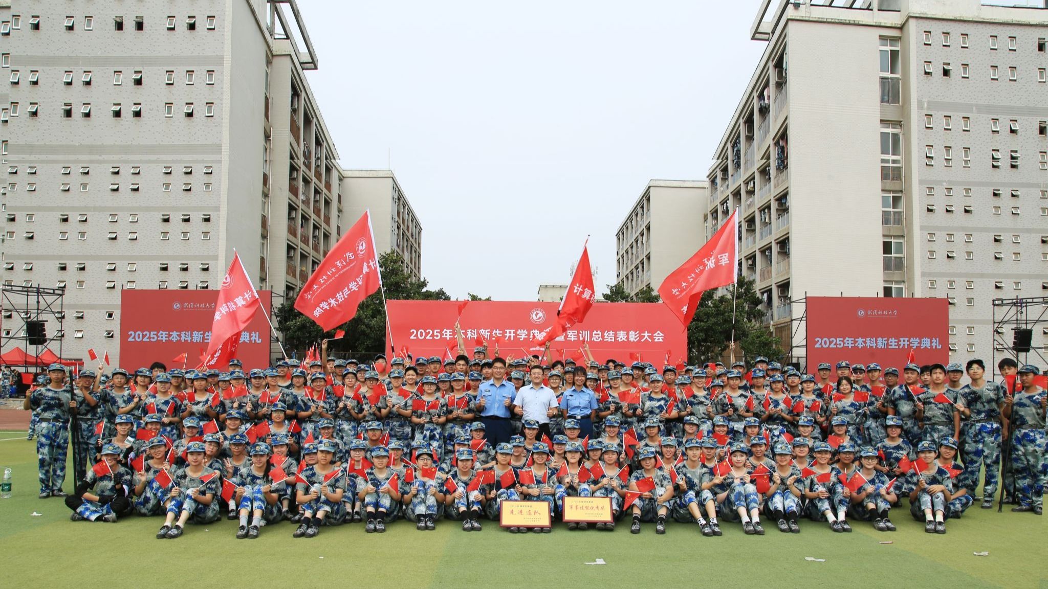 2025级本科新生军训总结表彰大会在黄家湖校区南区田径运动场举行。在为期14天的军事训练中,成人在线