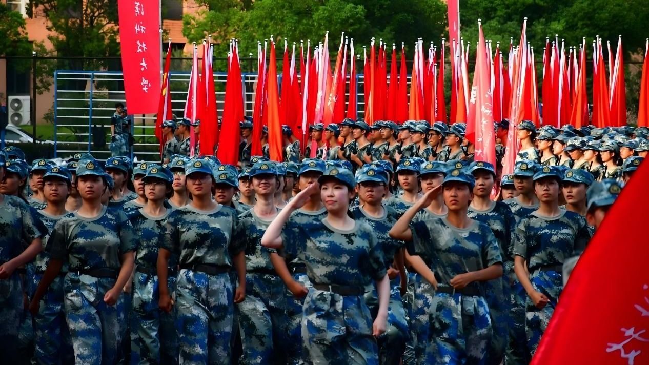 方阵步伐铿锵、口号嘹亮,以整齐队形正步通过主席台,接受学校及空军预警成人在线领导检阅。这严整的军容、昂扬的姿态,尽显新时代学子积极向上的青春风采与过硬的纪律作风。