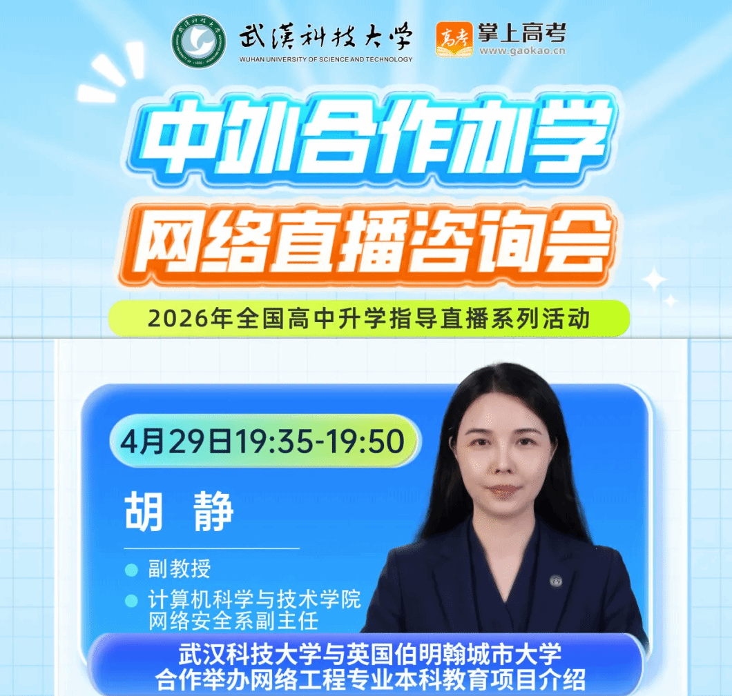 专业教师在线开讲,带你解锁与英国高校合作的本科项目,权威解读招生政策、培养模式与未来发展,为你的升学规划扫清疑问,别错过这场干货满满的直播!