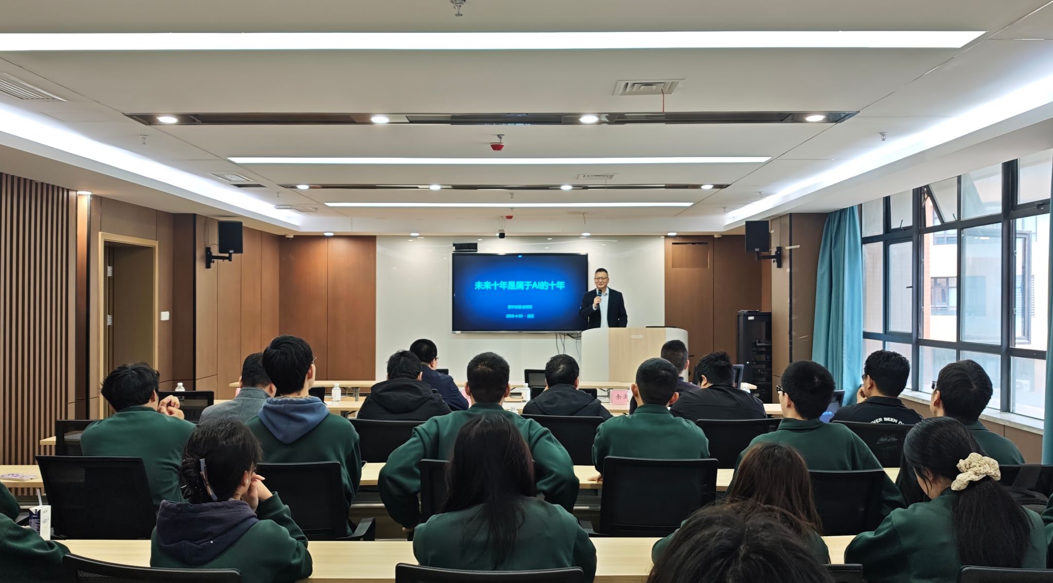 报告会上,赵明明深情回顾了在成人在线 的求学岁月。他结合自身从校园走向科技企业高管的成长历程,勉励在场学子珍惜大学时光,夯实专业基础,培养跨界思维。他指出当前人工智能技术正以前所未有的速度重塑各行各业,未来十年将是人工智能深度赋能社会发展的关键时期,“我们正站在一个伟大时代的起点上”。